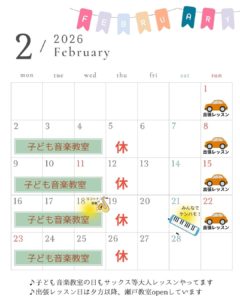 🎶 2月も通常通りレッスンを行っています 🎶